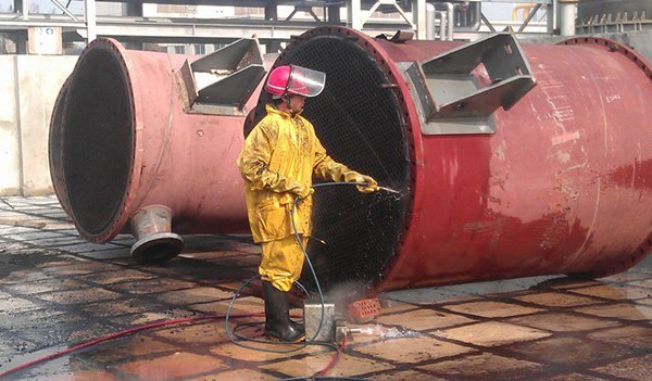 利用高壓流水對(duì)設(shè)備進(jìn)行清洗。需要高壓清洗設(shè)備。
